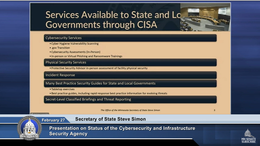 Screenshot 2025-02-27 155550 Published February 27, 2025 at 899 × 505 in MN Senate Committee on Elections learns about Impact of cuts to the Cybersecurity and Infrastructure Security Agency