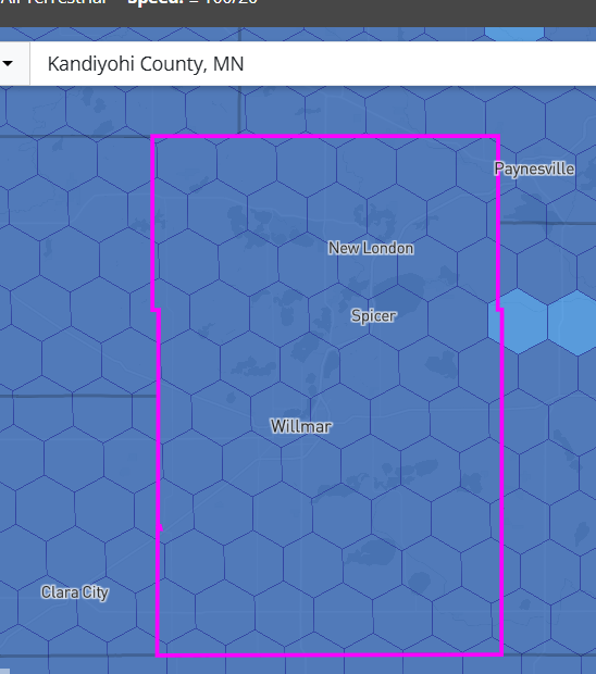 Screenshot 2025-11-28 121554 Published November 28, 2025 at 548 × 620 in How does the NATIONAL Broadband map rank your MN county for broadband access to 25 Mbps down and 3 Mbps up? (2025) Kandiyohi County (National Map)