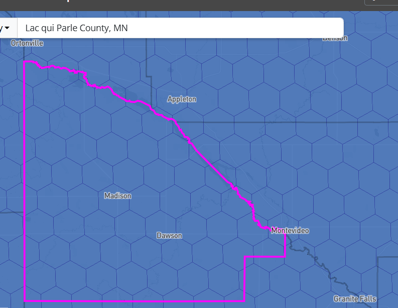 Screenshot 2025-11-28 121832 Published November 28, 2025 at 793 × 613 in How does the NATIONAL Broadband map rank your MN county for broadband access to 25 Mbps down and 3 Mbps up? (2025) Lac qui Parle County (National Map)