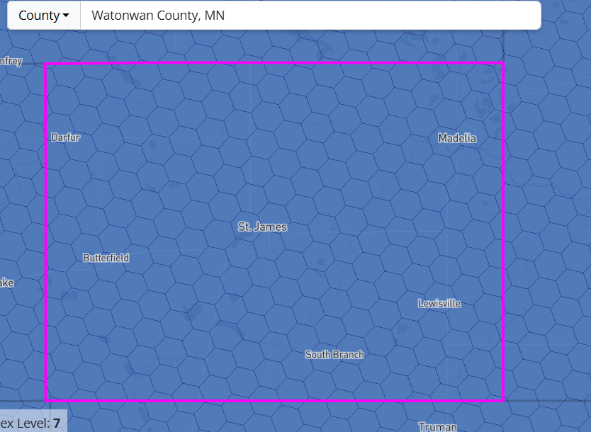 Screenshot 2025-11-28 125833 Published November 28, 2025 at 834 × 610 in How does the NATIONAL Broadband map rank your MN county for broadband access to 25 Mbps down and 3 Mbps up? (2025) Watonwan County (National Map)