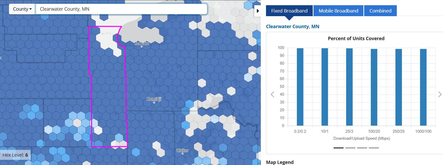 Clearwater County National FCC Map Published December 22, 2025 at 1697 × 633 in Clearwater County Broadband Profile 2025: Green Rating: Ranking out 16 of 87 National FCC Map